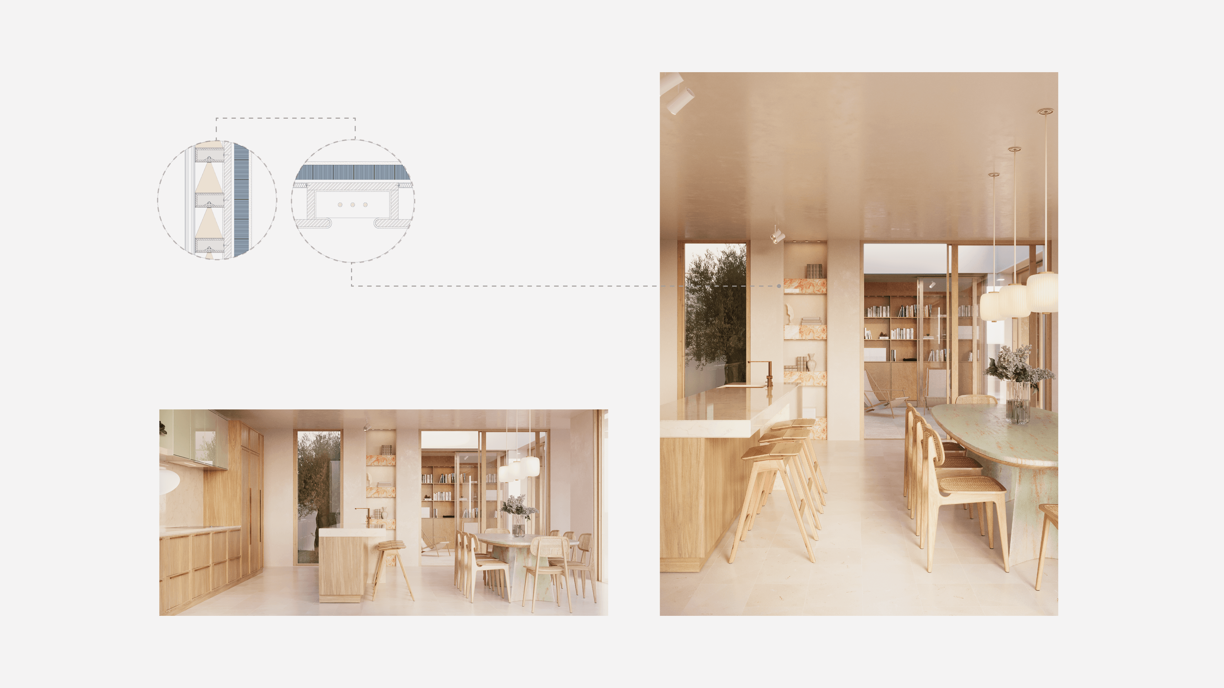 En esta propuesta de interiorismo para una vivienda privada ubicada en la costa de Dénia exploramos un lenguaje espacial que mezcla lo contemporáneo con la estética mediterránea. El proyecto se basa en la honestidad de los materiales: la madera natural dialoga con el entorno mediterráneo, generando una atmósfera acogerdora y suave. Líneas limpias y una paleta cromática sobria praparan el entorno para la rutina de la vida cotidiana a la vez que aportan elegancia al espacio.